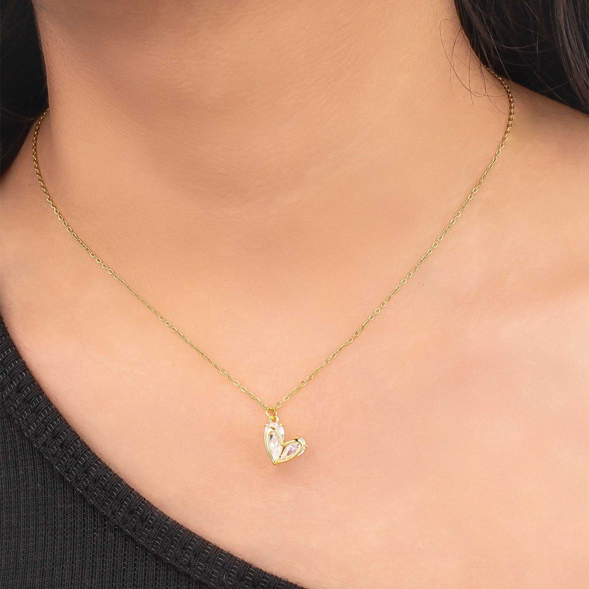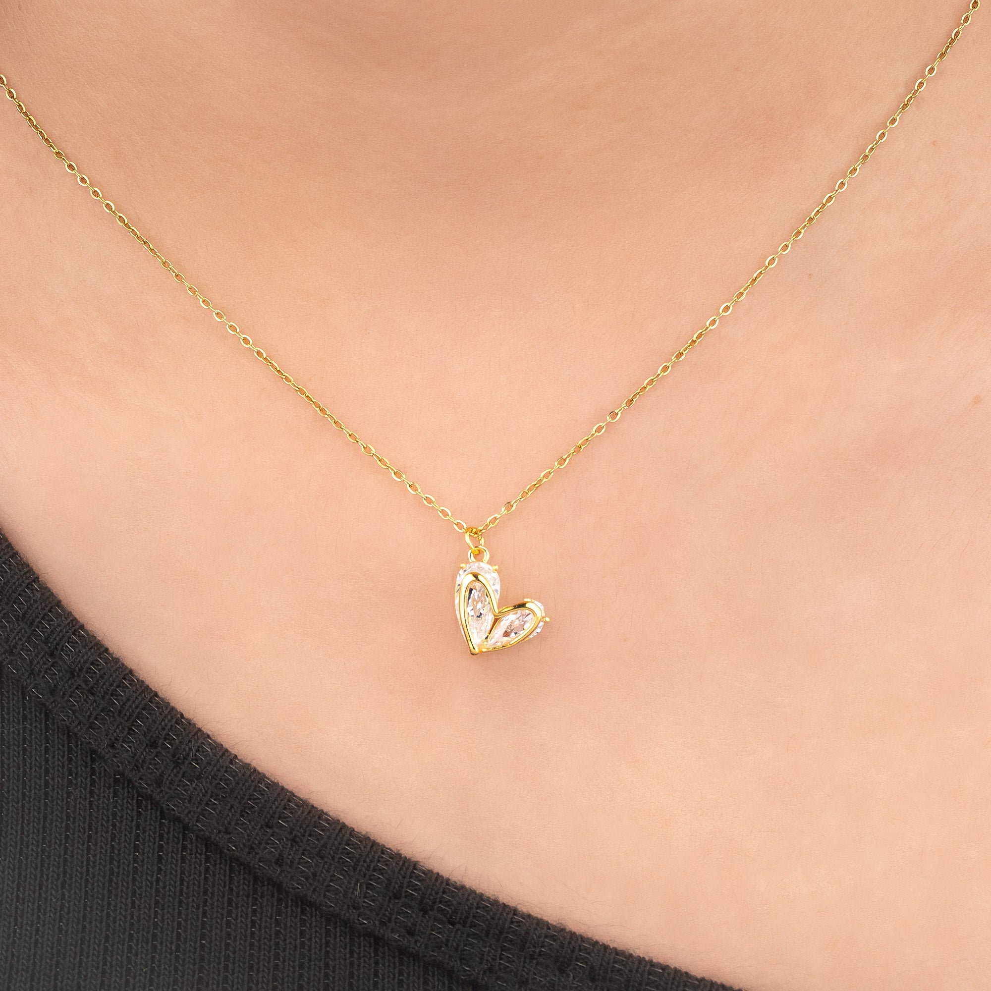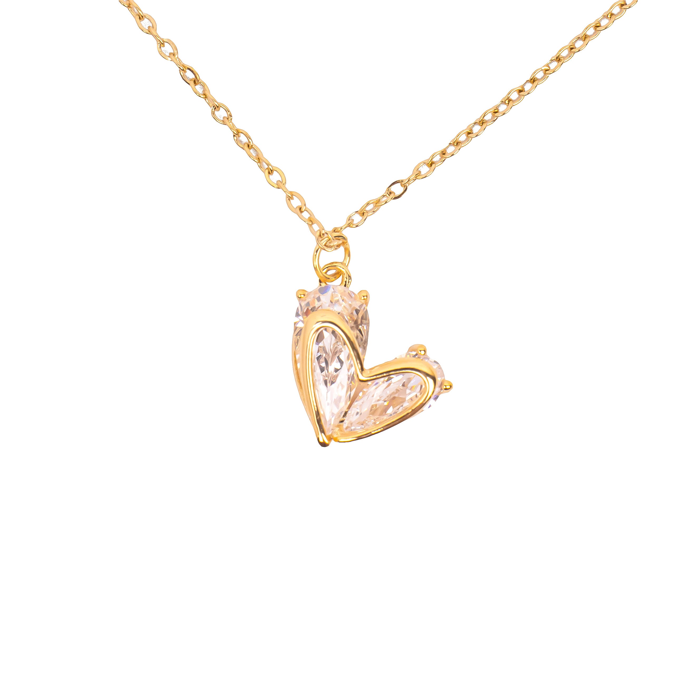 3D Heart Diamond Necklace 18K Gold Plated
