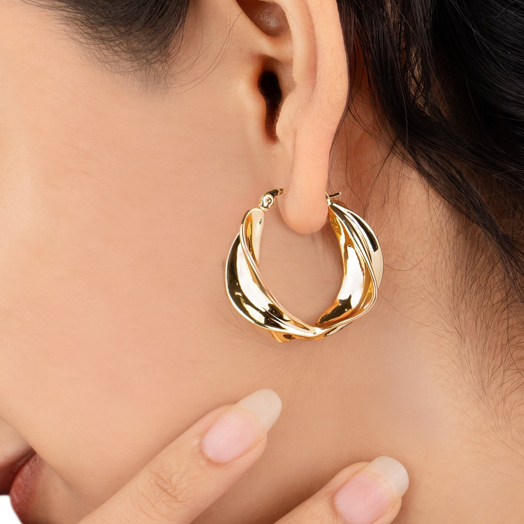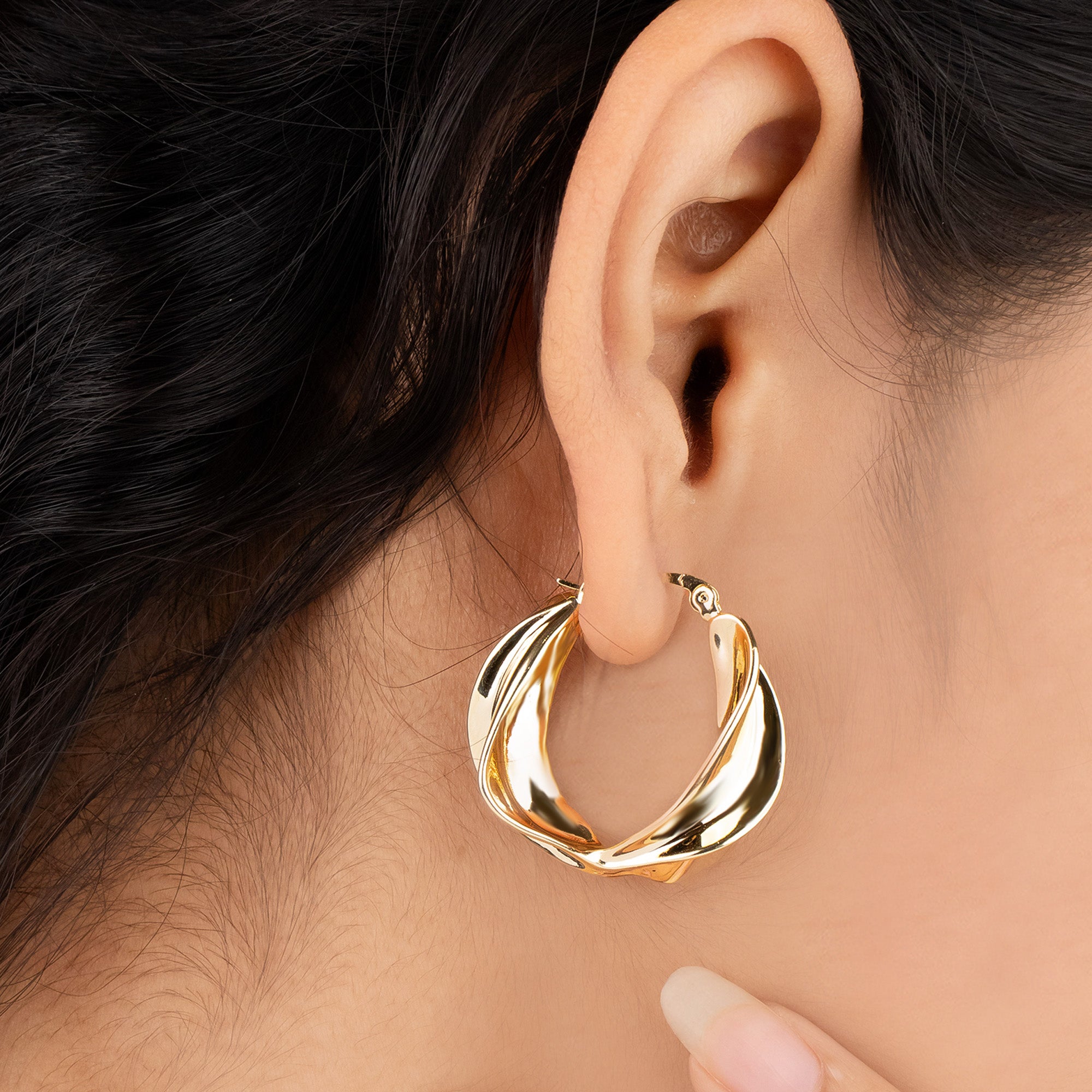 Twisted hoops feature an intricate, spiraled design that adds depth and texture to a classic look. Their unique shape offers a stylish twist, making them a versatile accessory for any occasion.