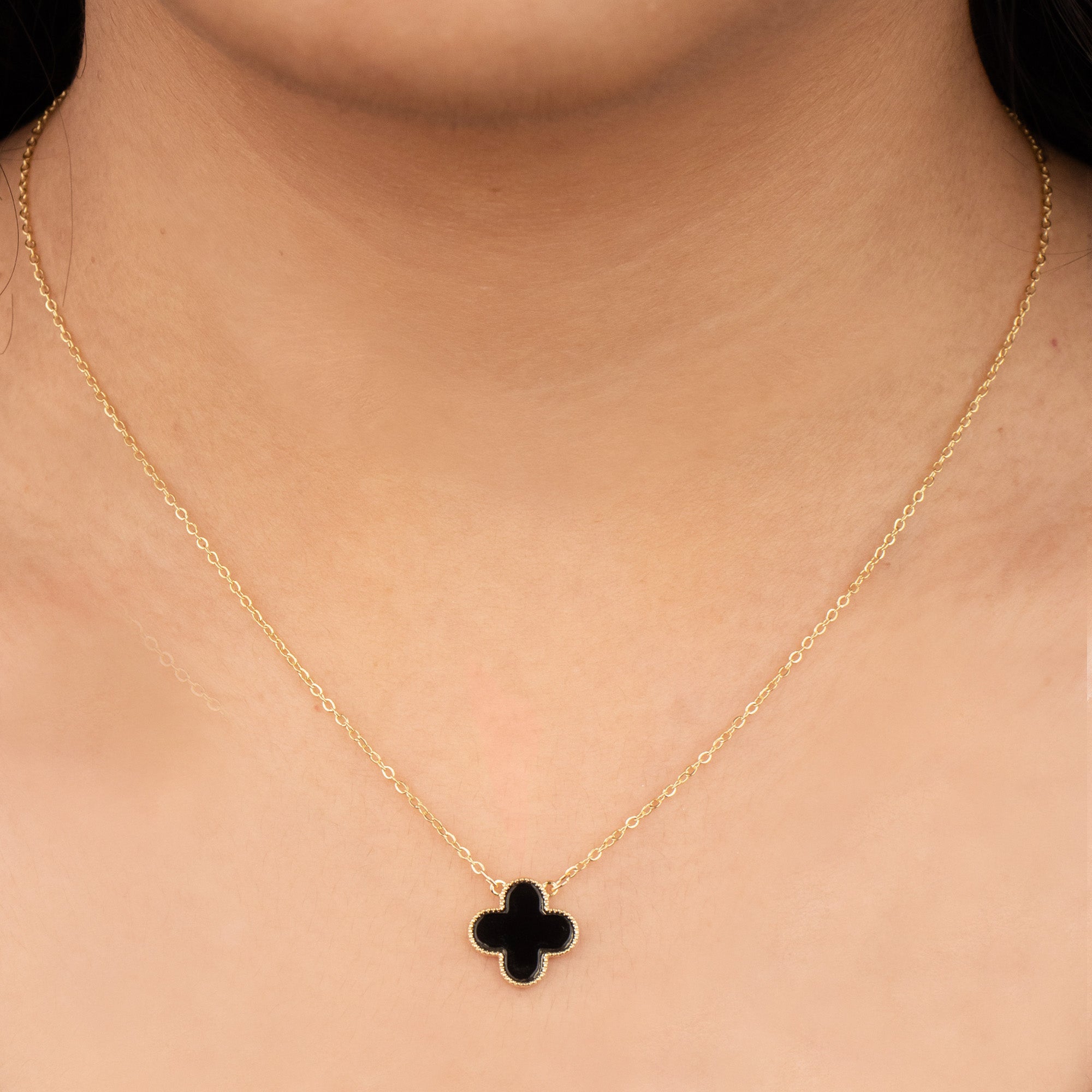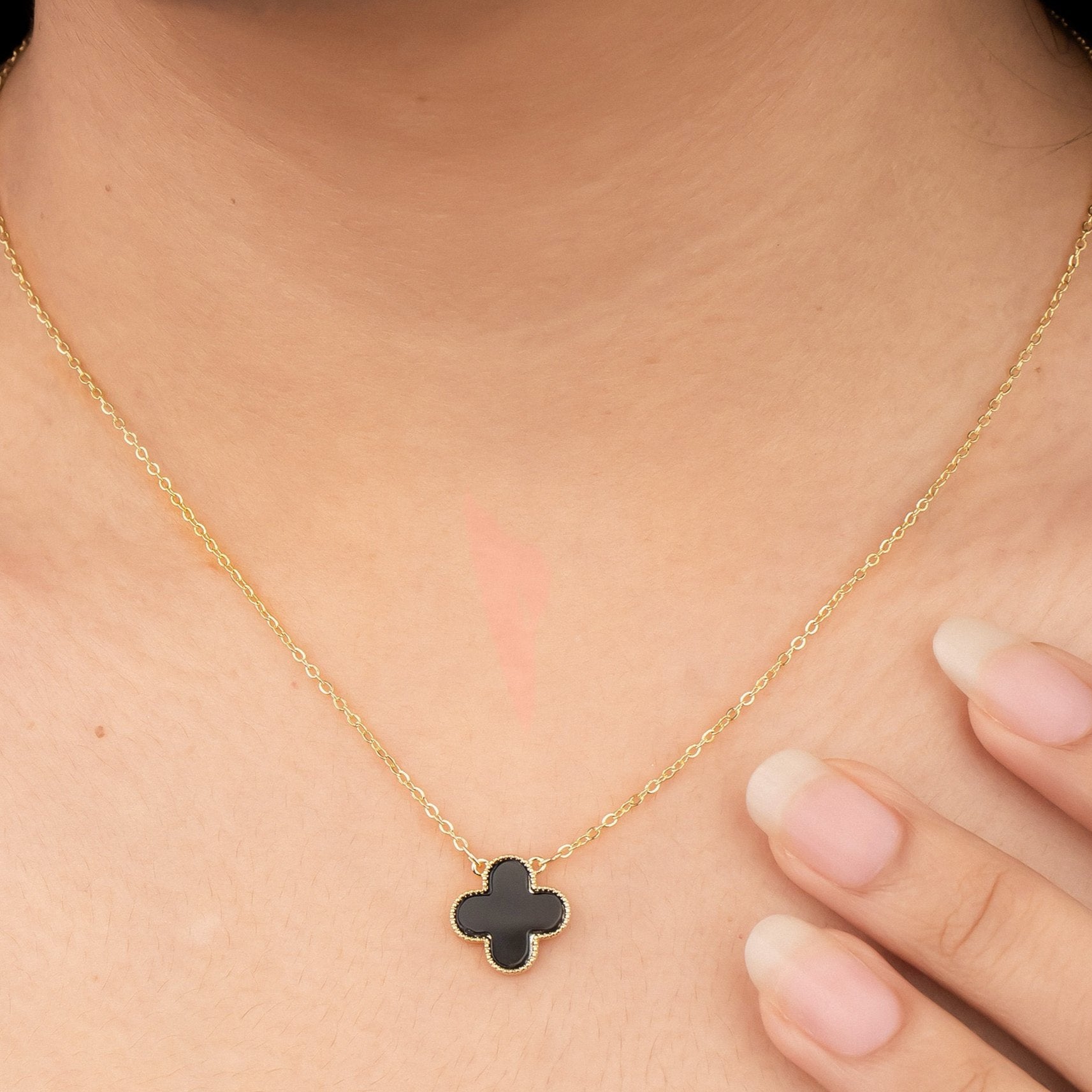 This chic black premium clover necklace showcases a stylish pendant, featuring a dramatic, dark hue that adds edgy sophistication to any outfit.