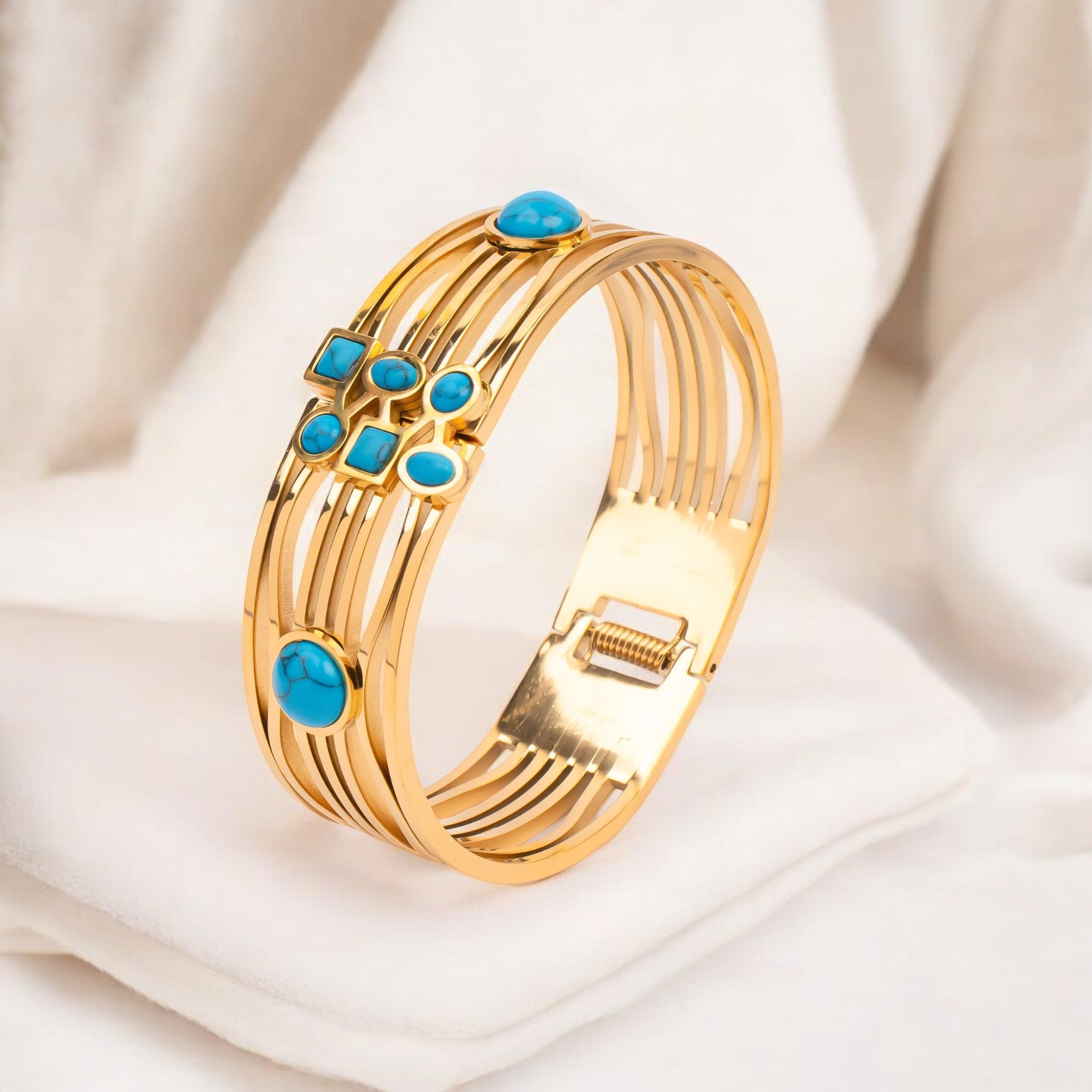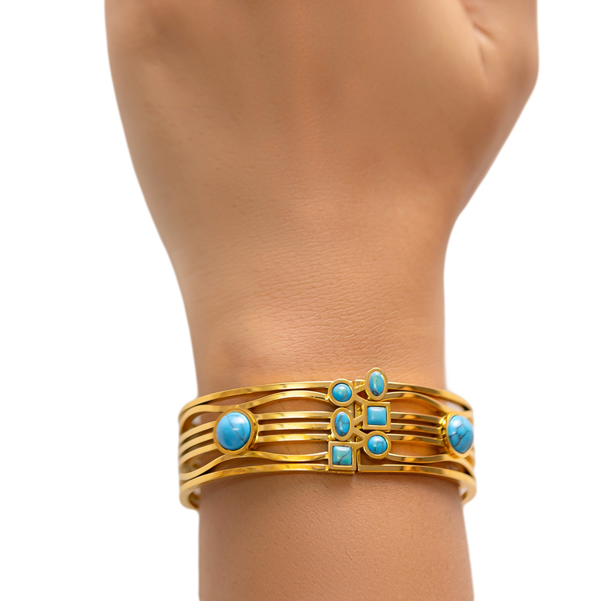 Boho Turquoise Cuff Bracelet 18K Gold Plated