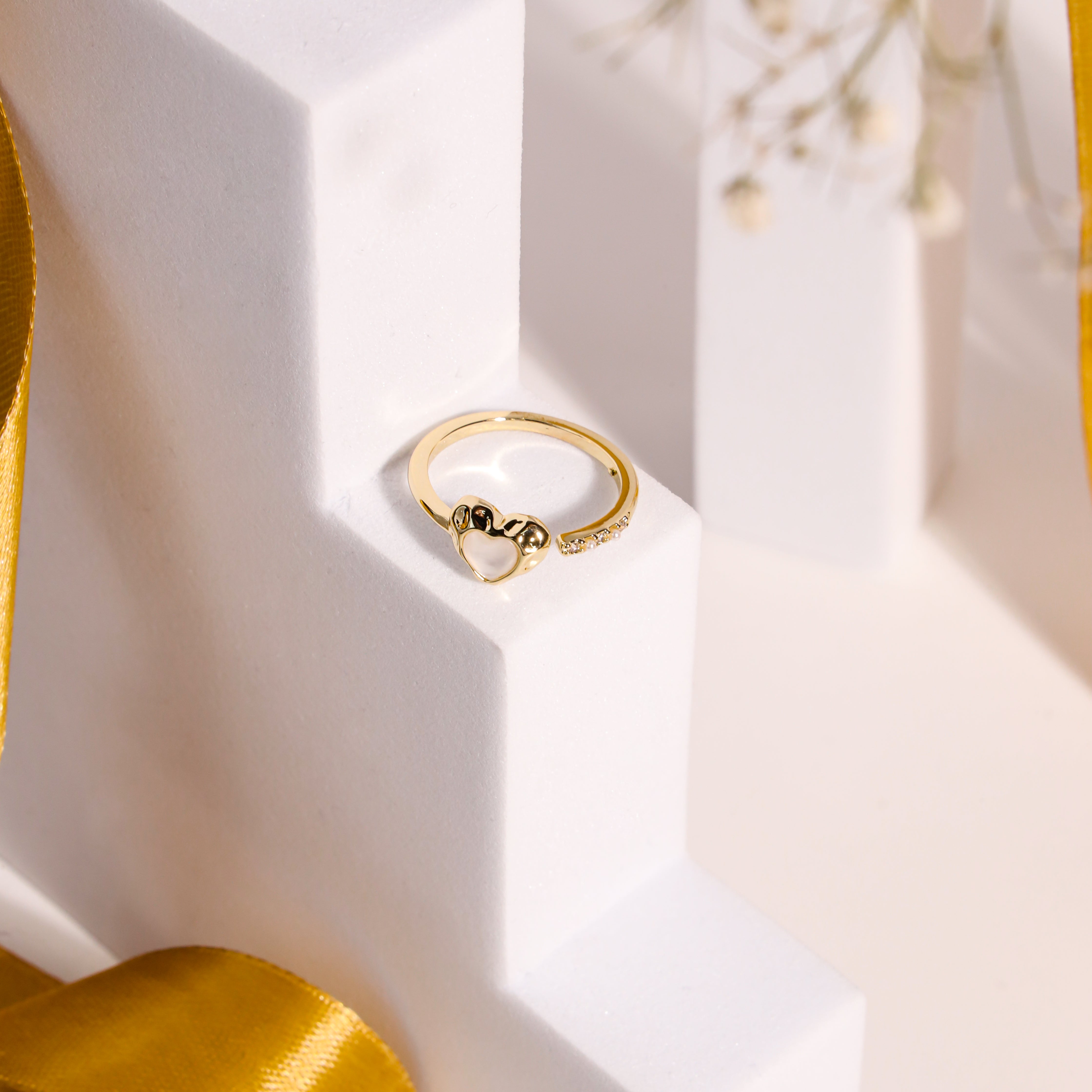 The Celestial Heart Adjustable Ring features a beautifully crafted heart design with celestial accents, symbolizing love and cosmic energy. Its adjustable band ensures a comfortable fit while adding a touch of celestial elegance.