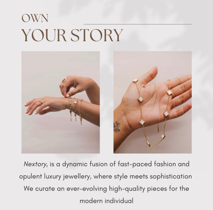 At Nextory, we are committed to providing high-quality jewellery that combines style, durability, and comfort. Our stainless steel and brass collections are designed to cater to your everyday needs, allowing you to express your individuality with confidence. With our focus on luxury, practicality, and unique designs, you can trust that every piece from Nextory is crafted to stand the test of time.