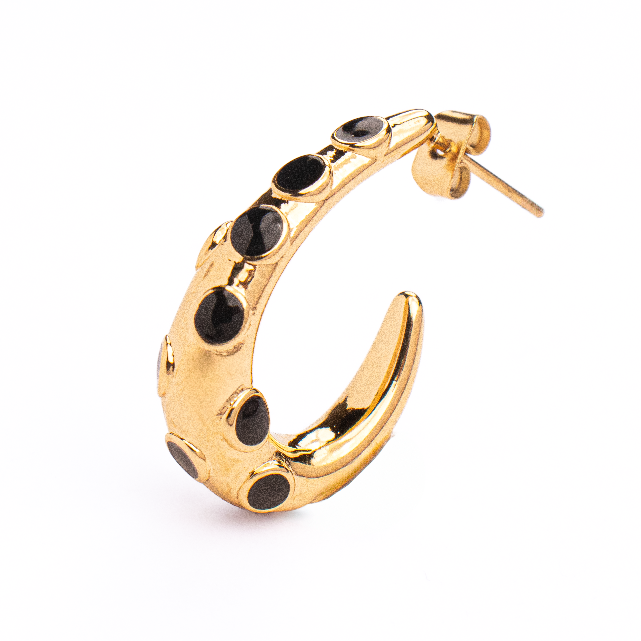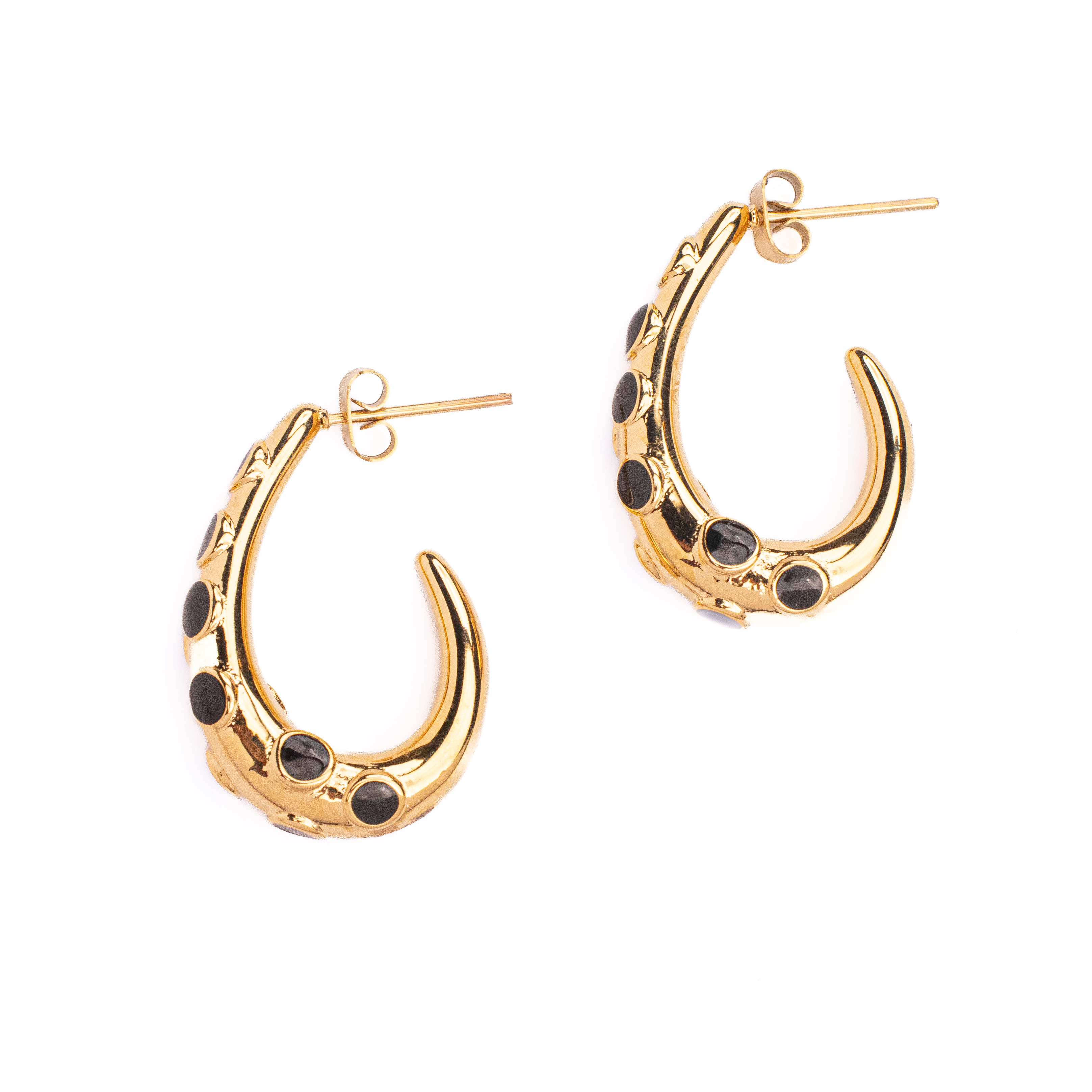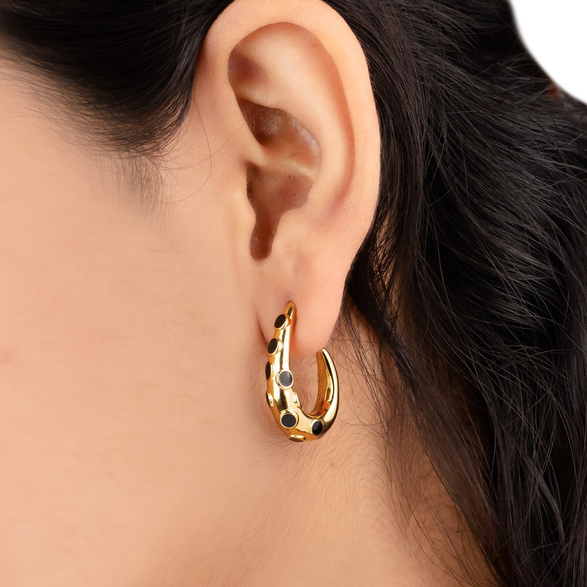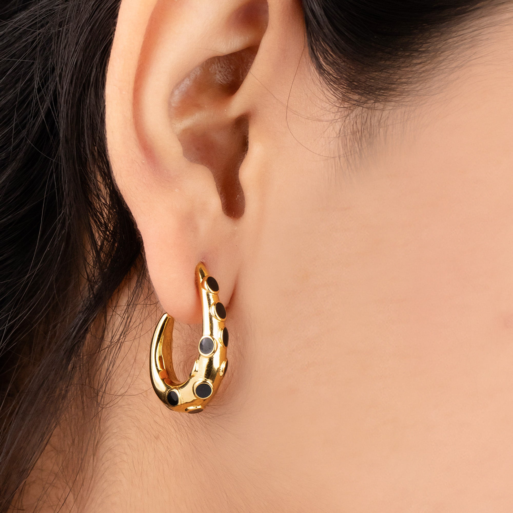 Black Studded Half Hoops 18K Gold Plated