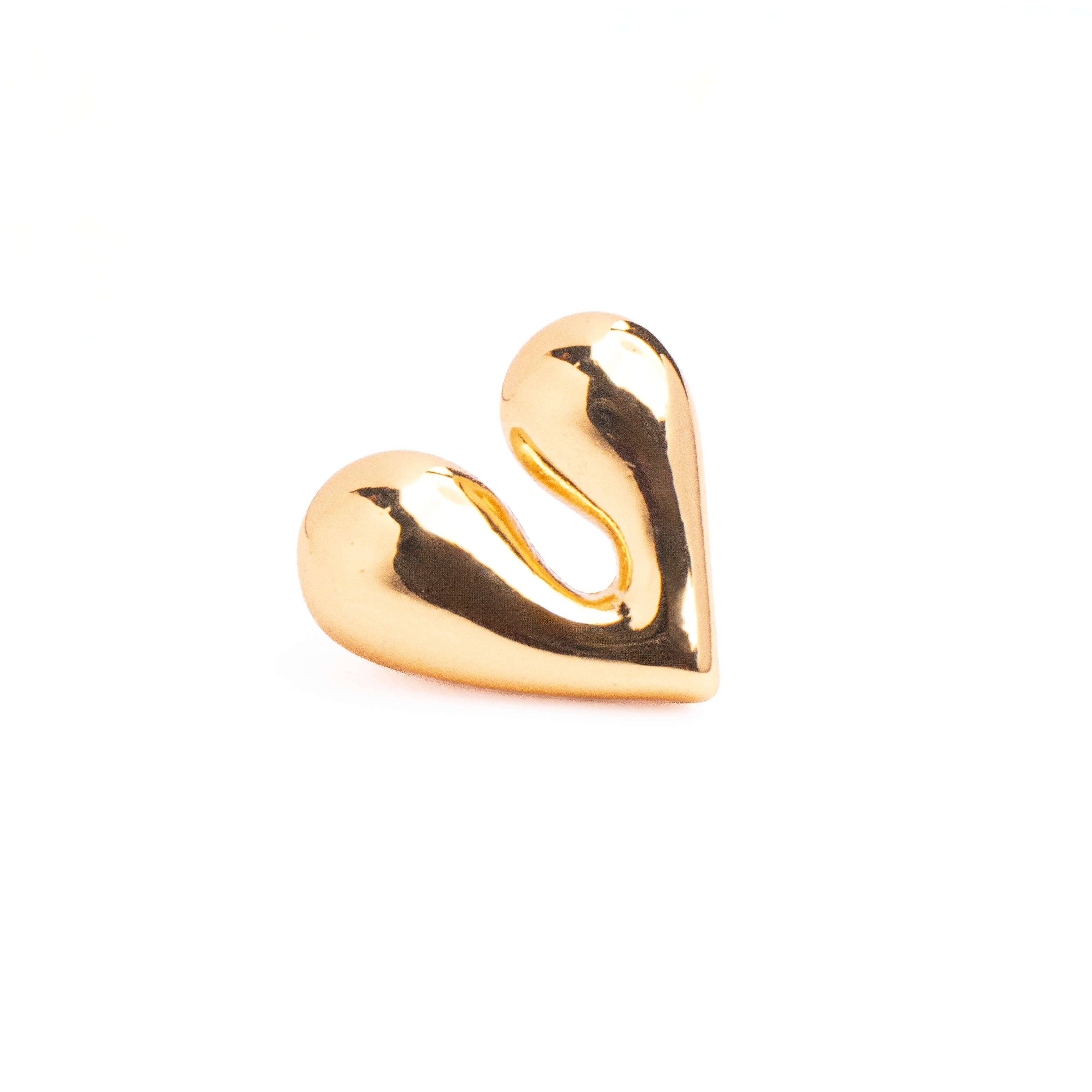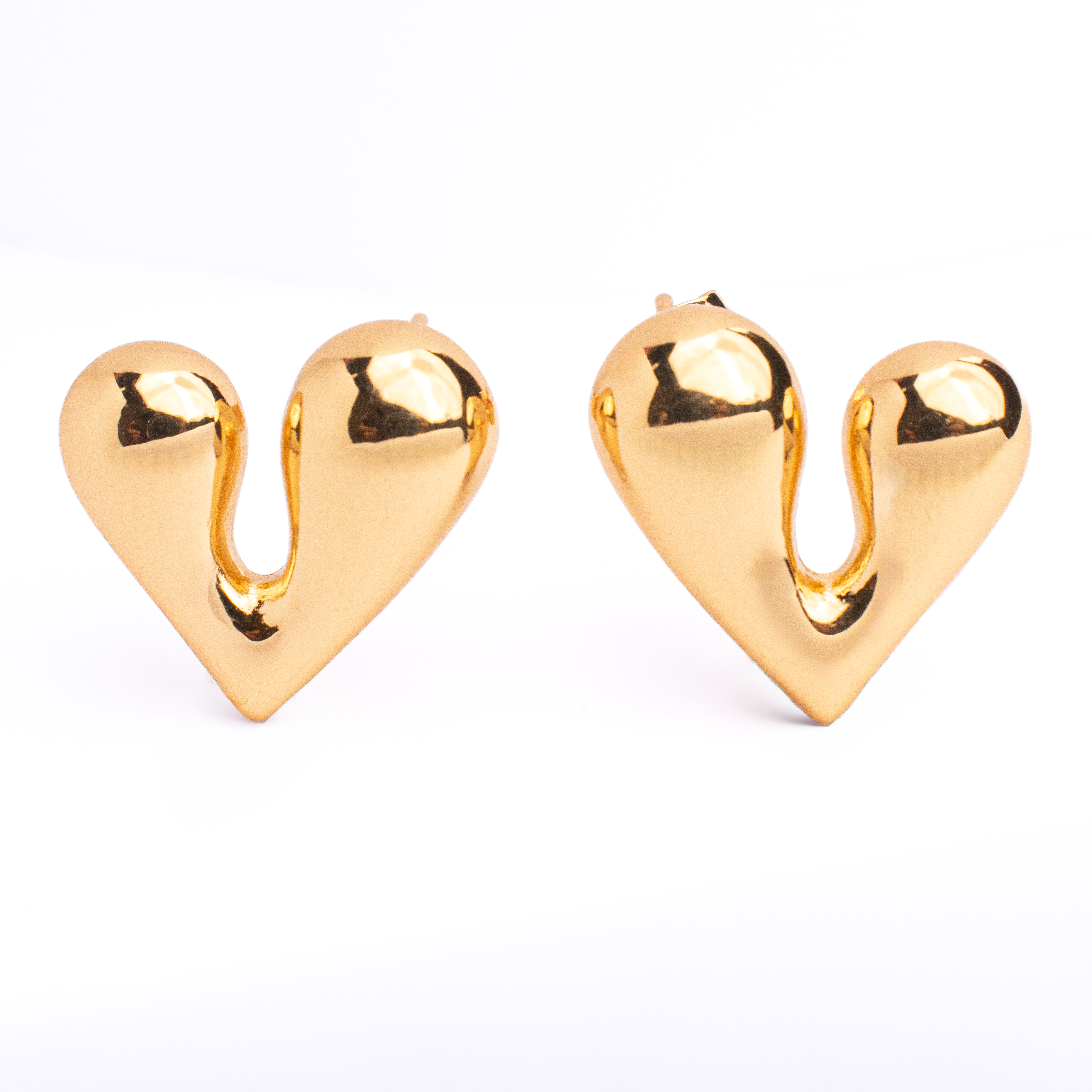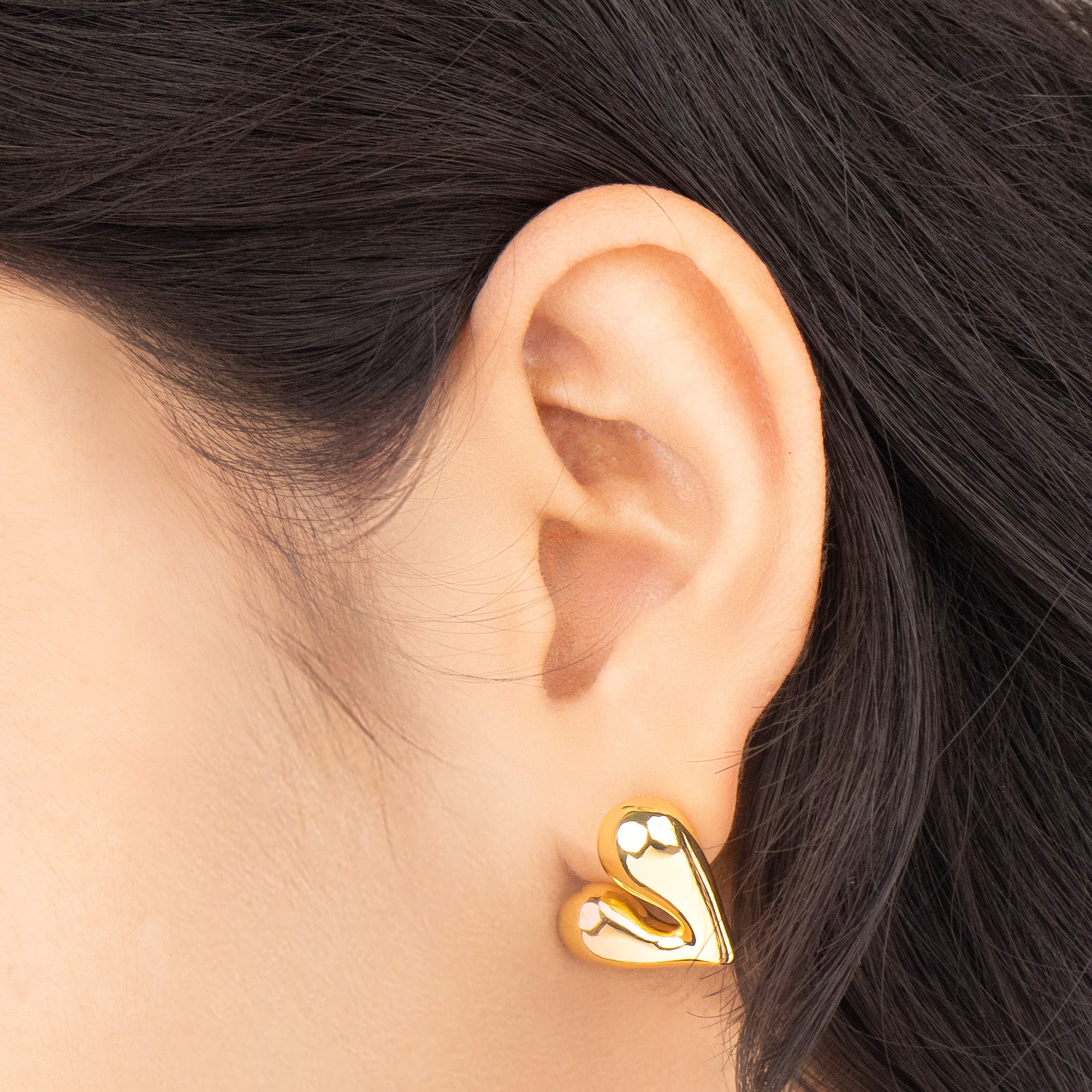These gold chunky heart studs feature a bold and playful design that adds a touch of whimsy to any outfit. Their eye-catching shape and rich finish make them a perfect statement accessory for everyday wear or special occasions.