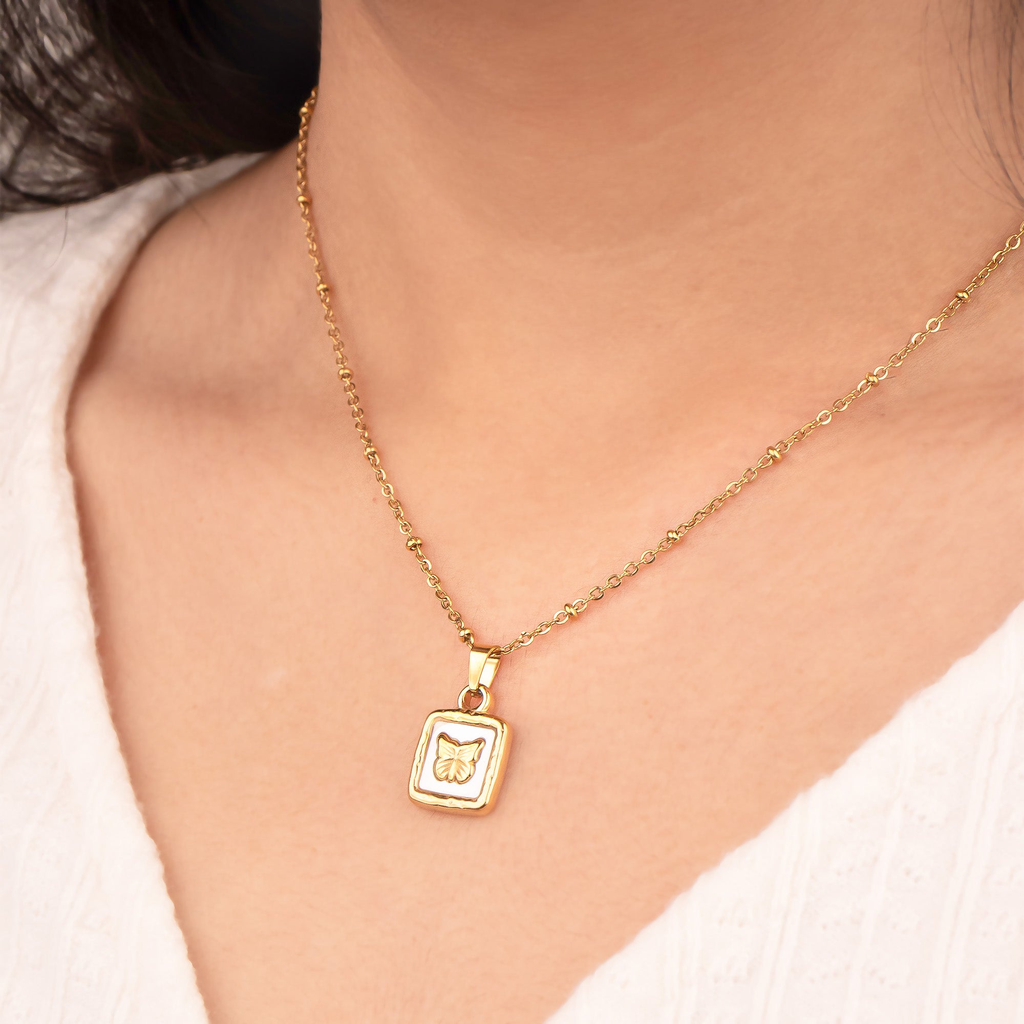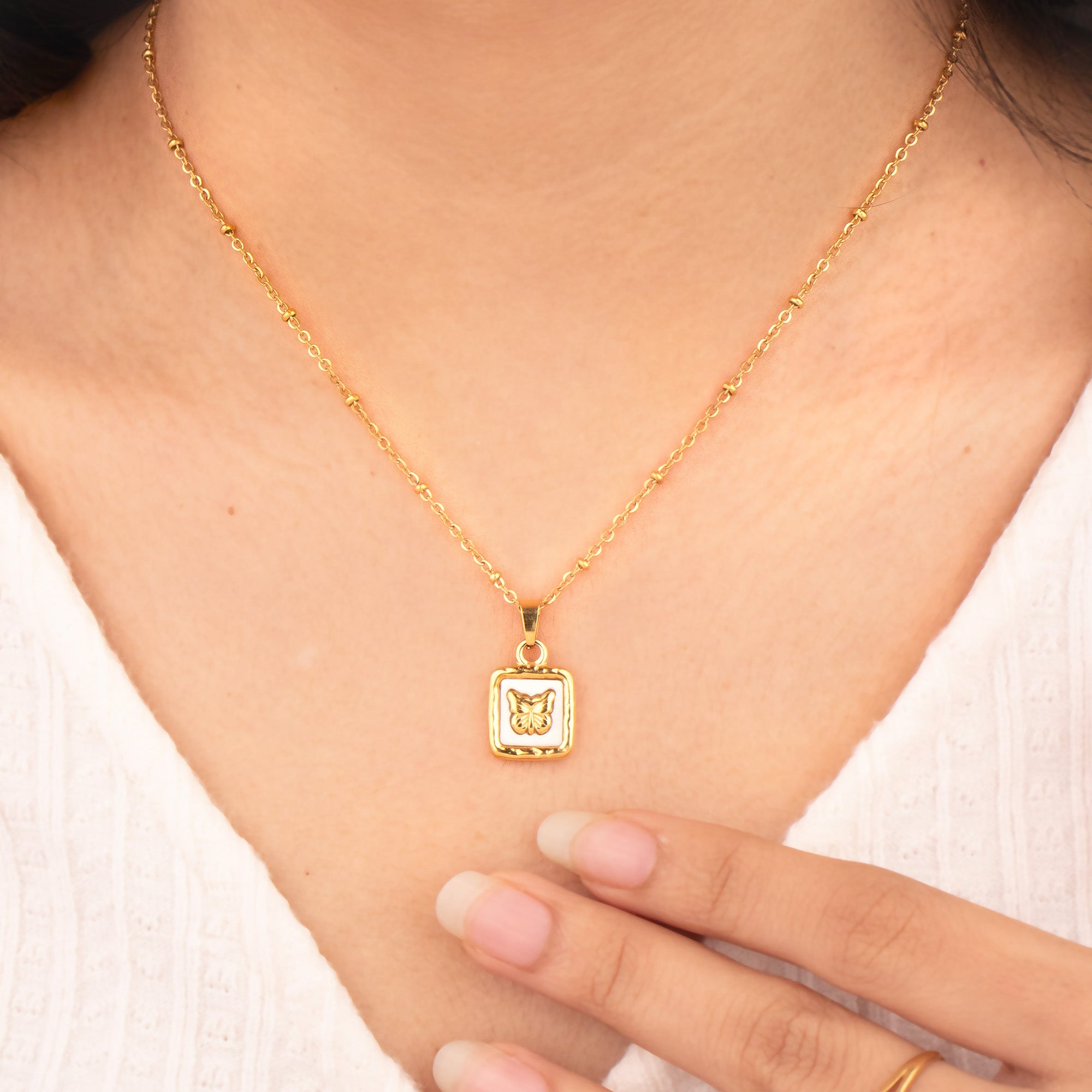 Elevate your style with this exquisite Mother of Pearl butterfly necklace, A symbol of transformation and beauty, this intricate necklace adds a touch of whimsy and sophistication to any ensemble.