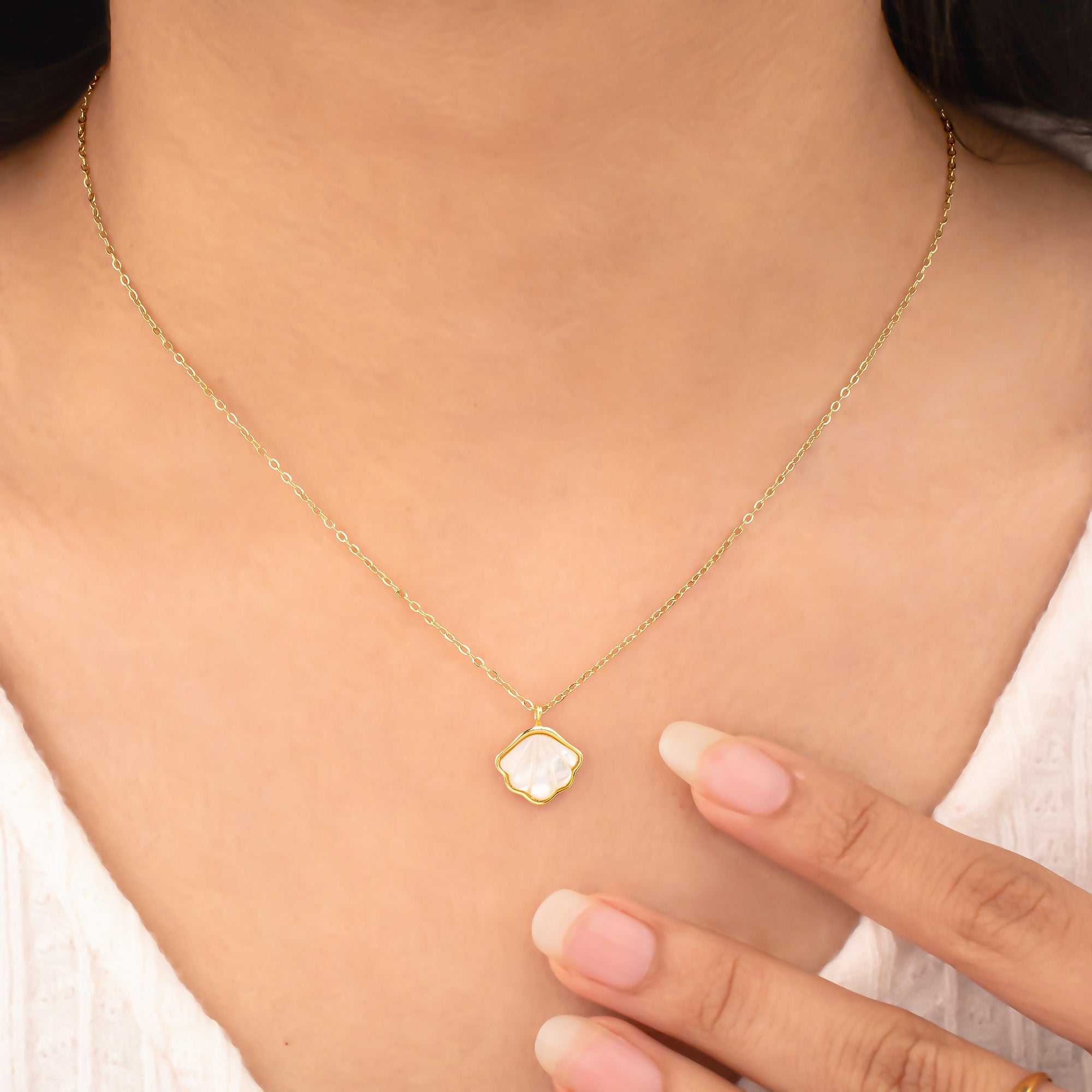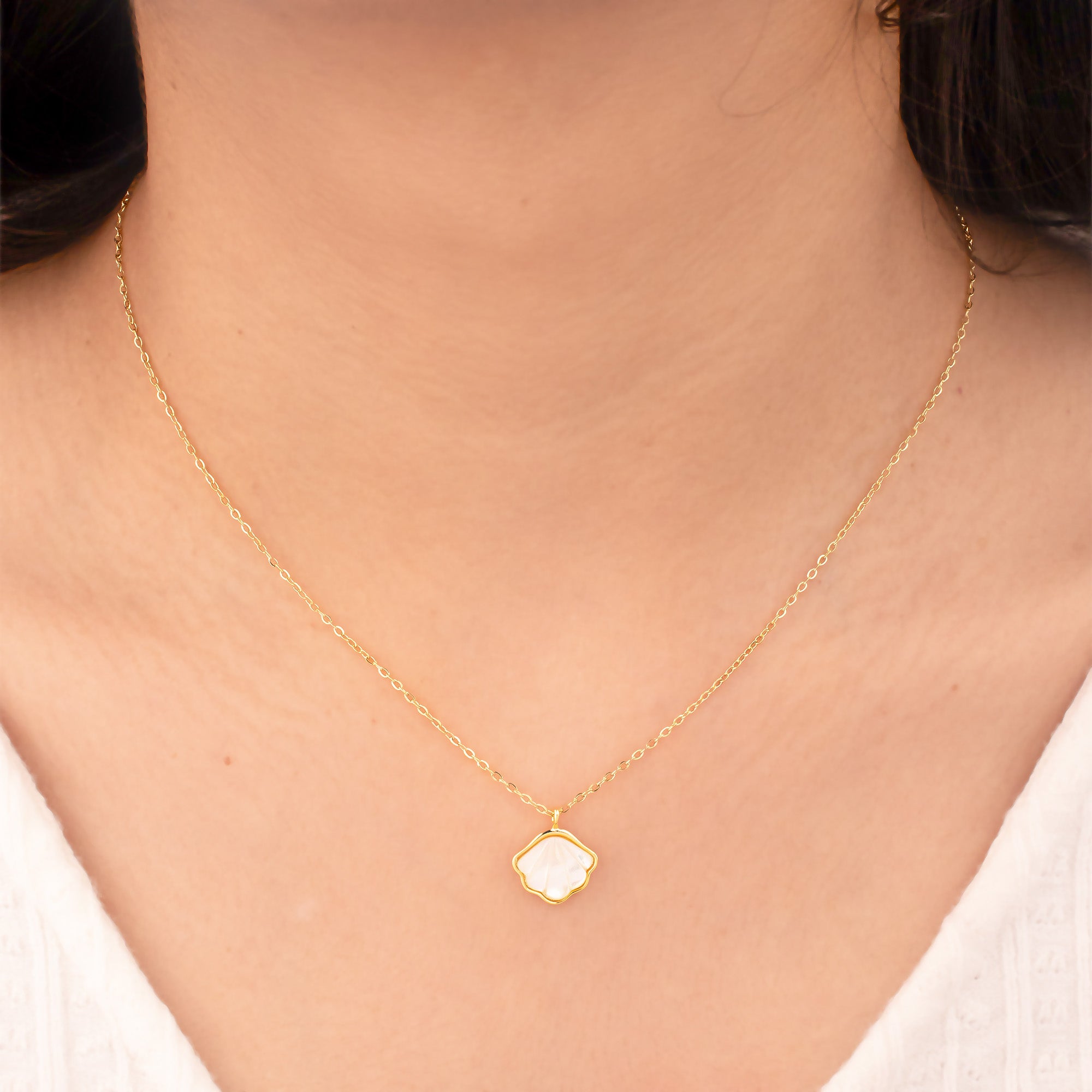Shine with timeless elegance with this exquisite Mother of Pearl shell necklace, featuring luminous, naturally-iridescent MOP shells that evoke the beauty of the ocean and add a touch of sophisticated glamour to any outfit.