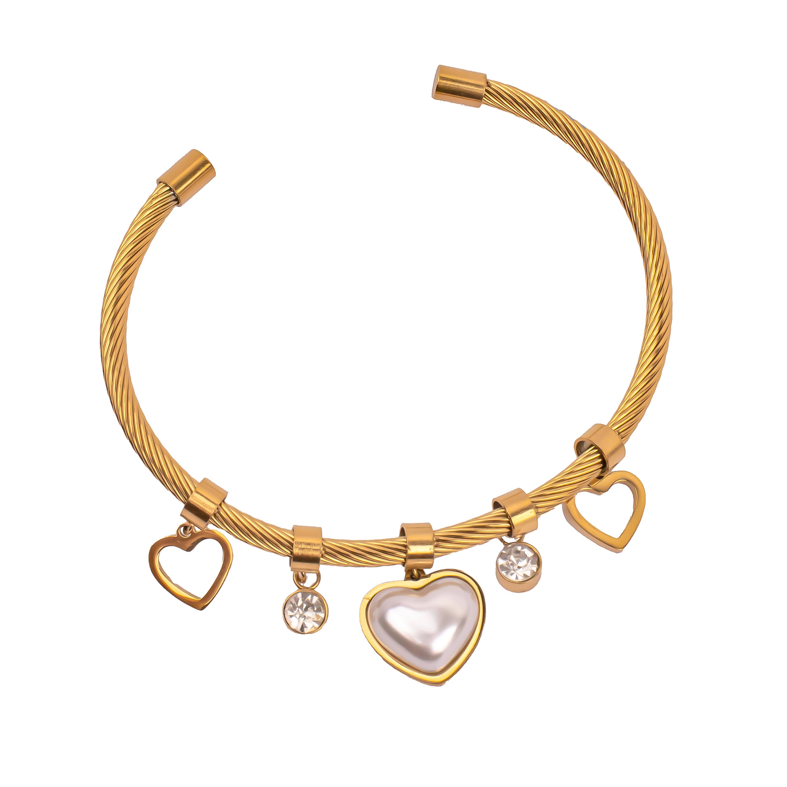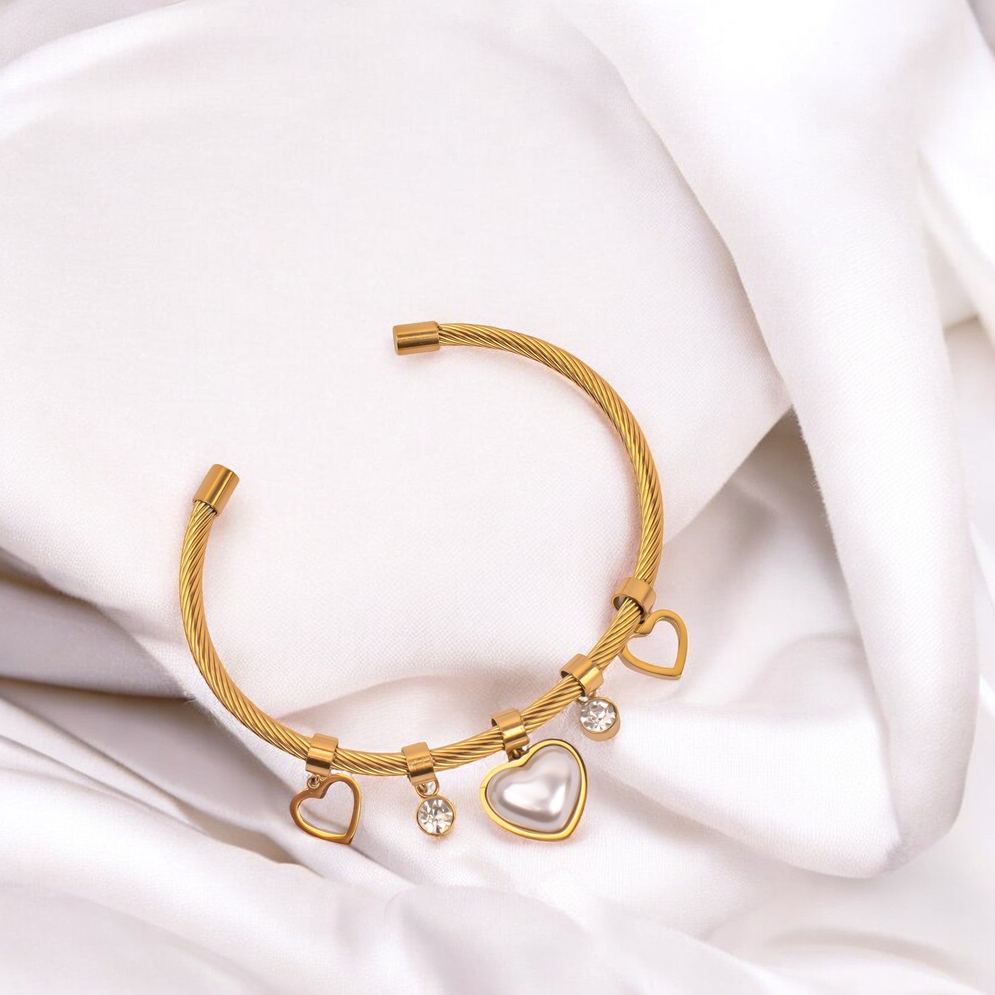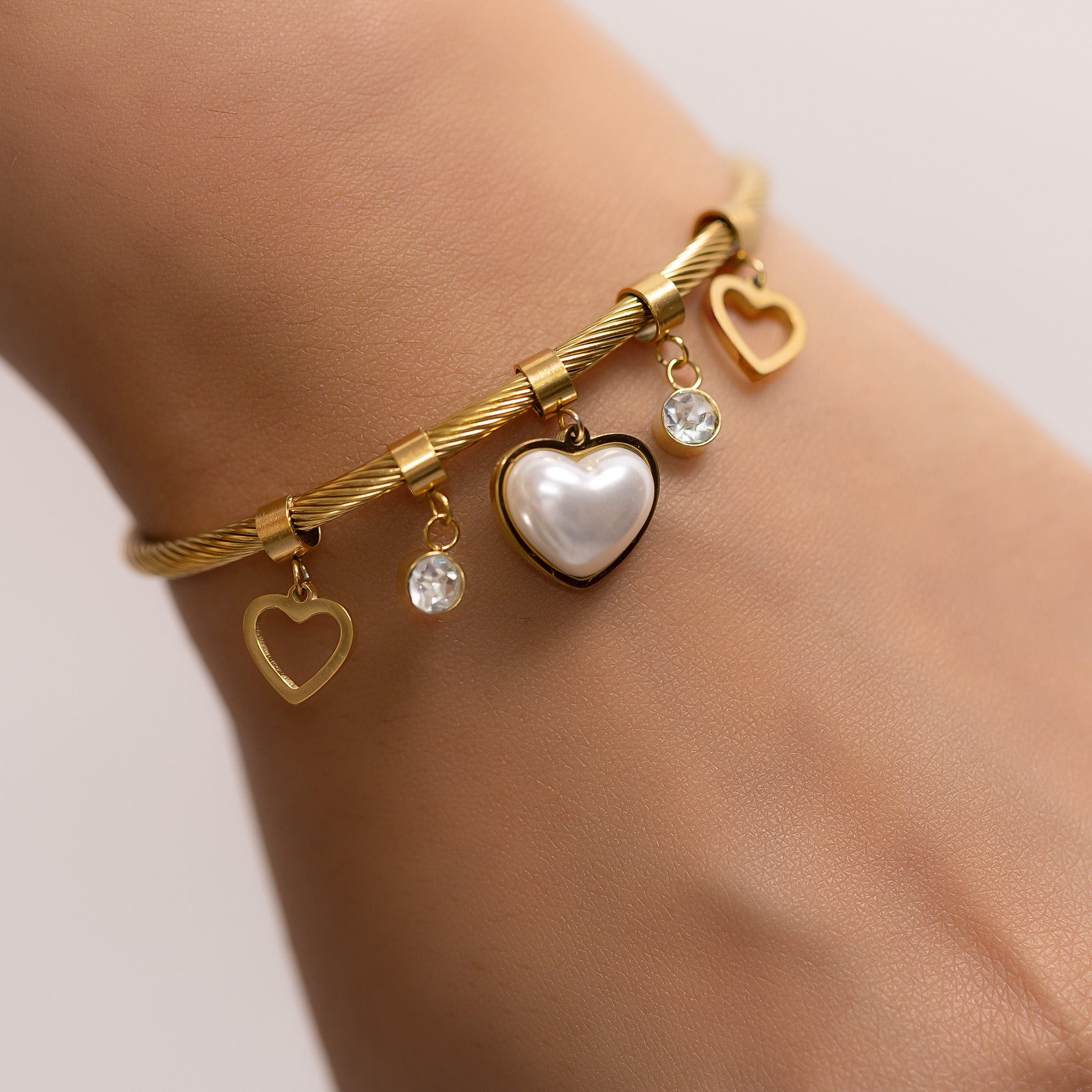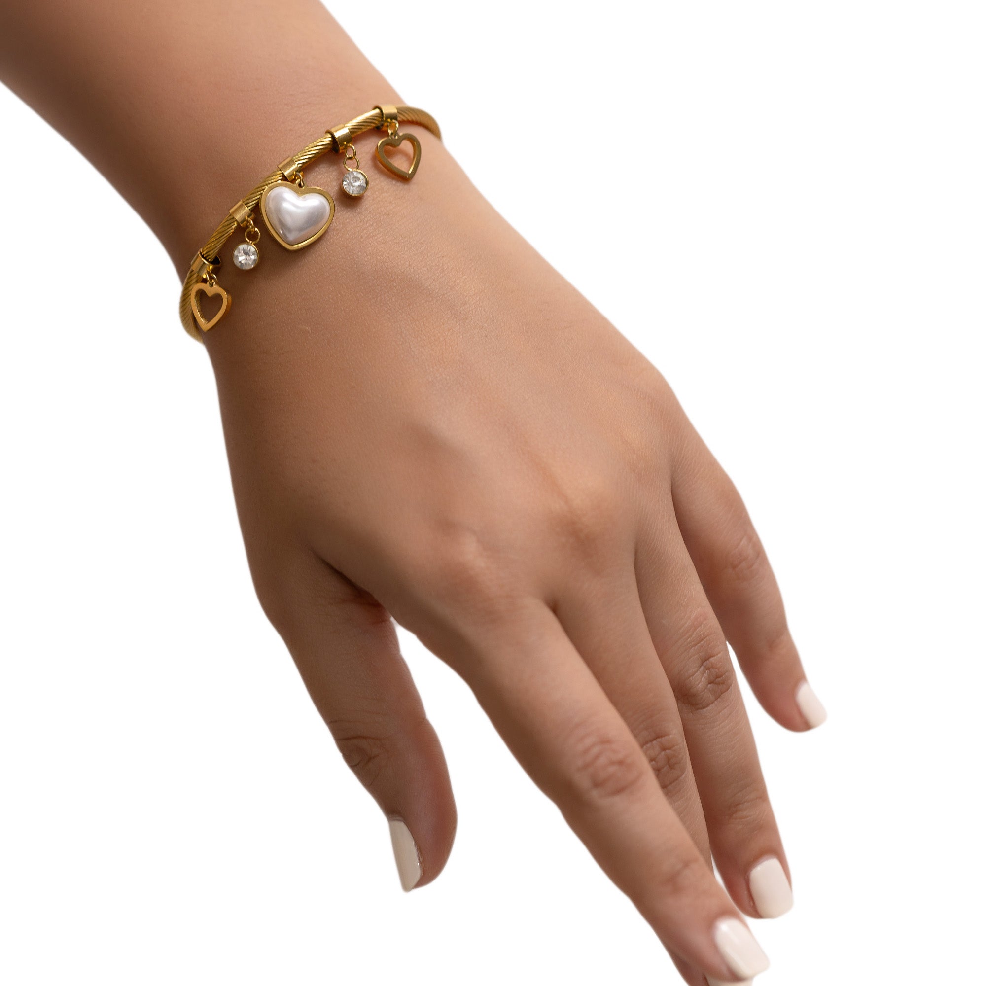 Pearl Heart Charms Bracelet 18K Gold Plated