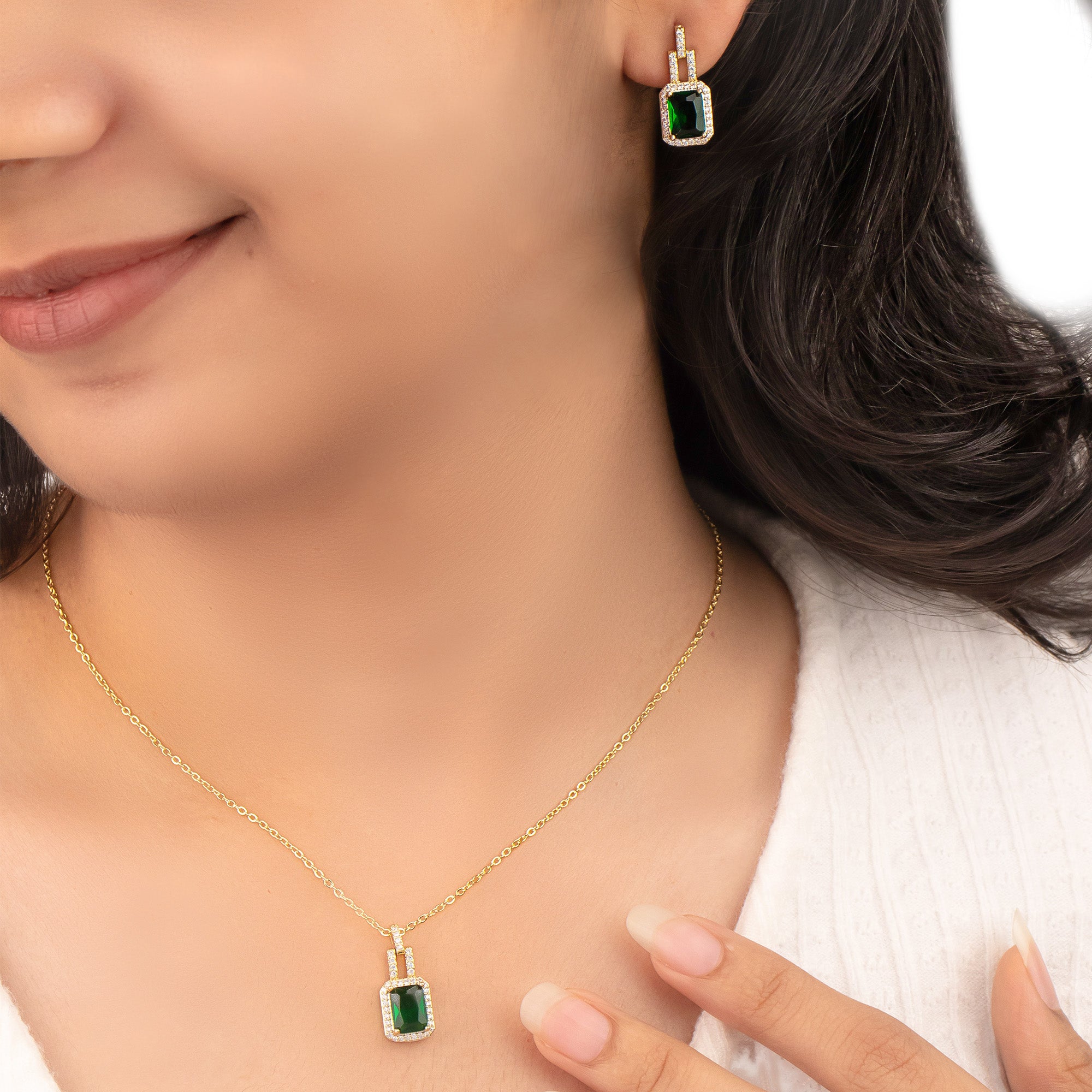 Premium Diamond & Emerald Jewellery Set 18K Gold Plated