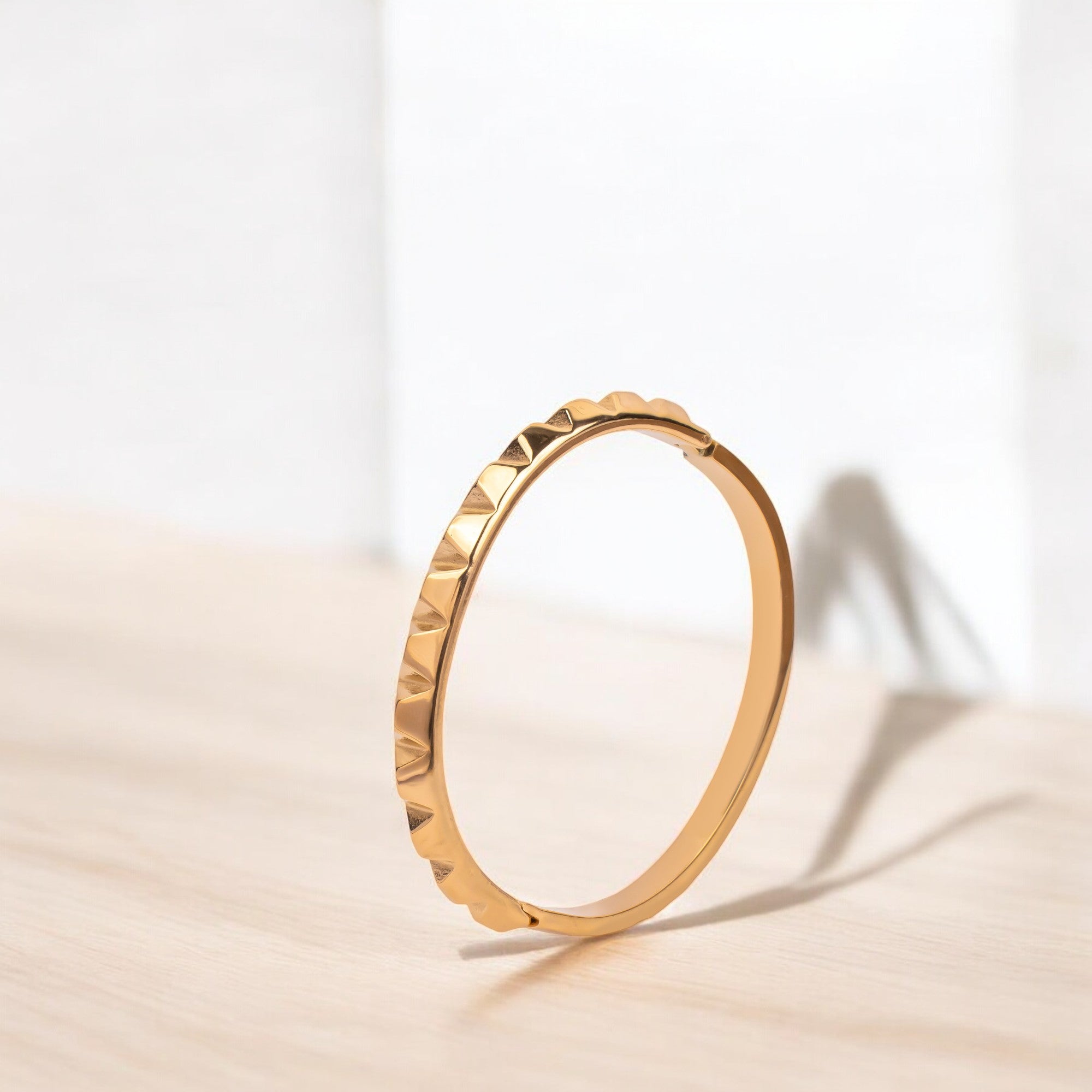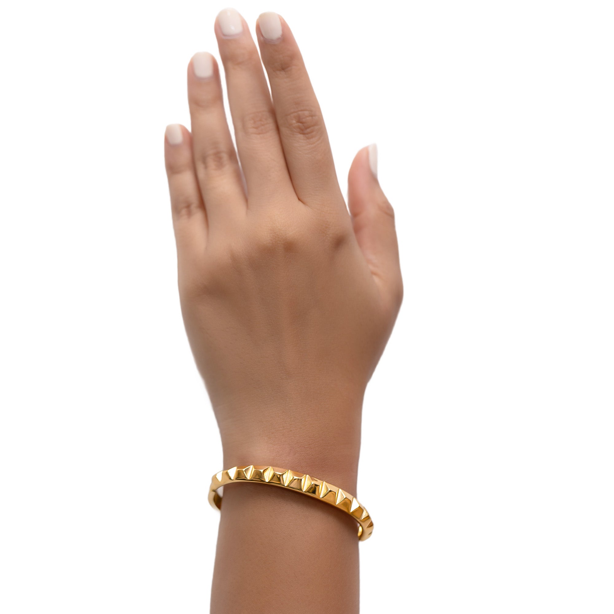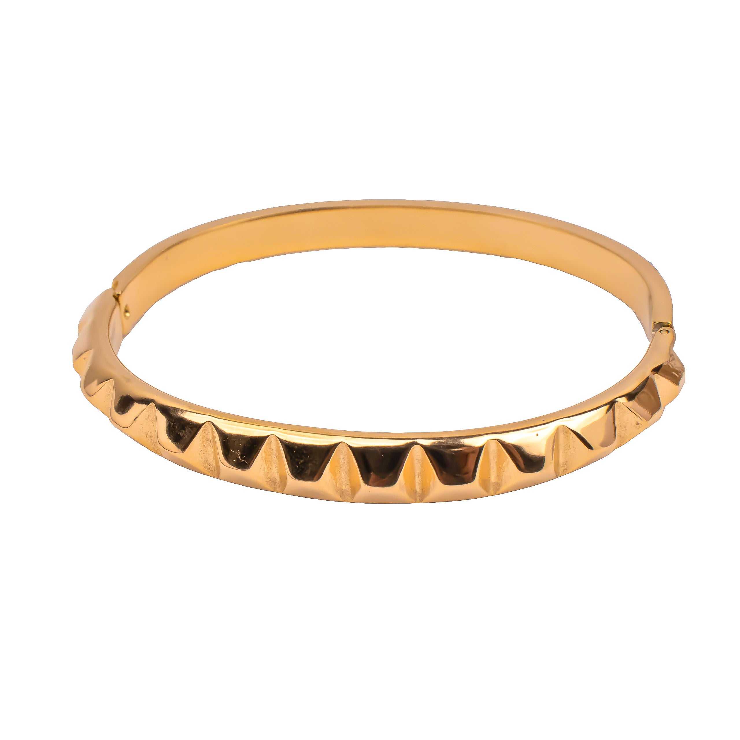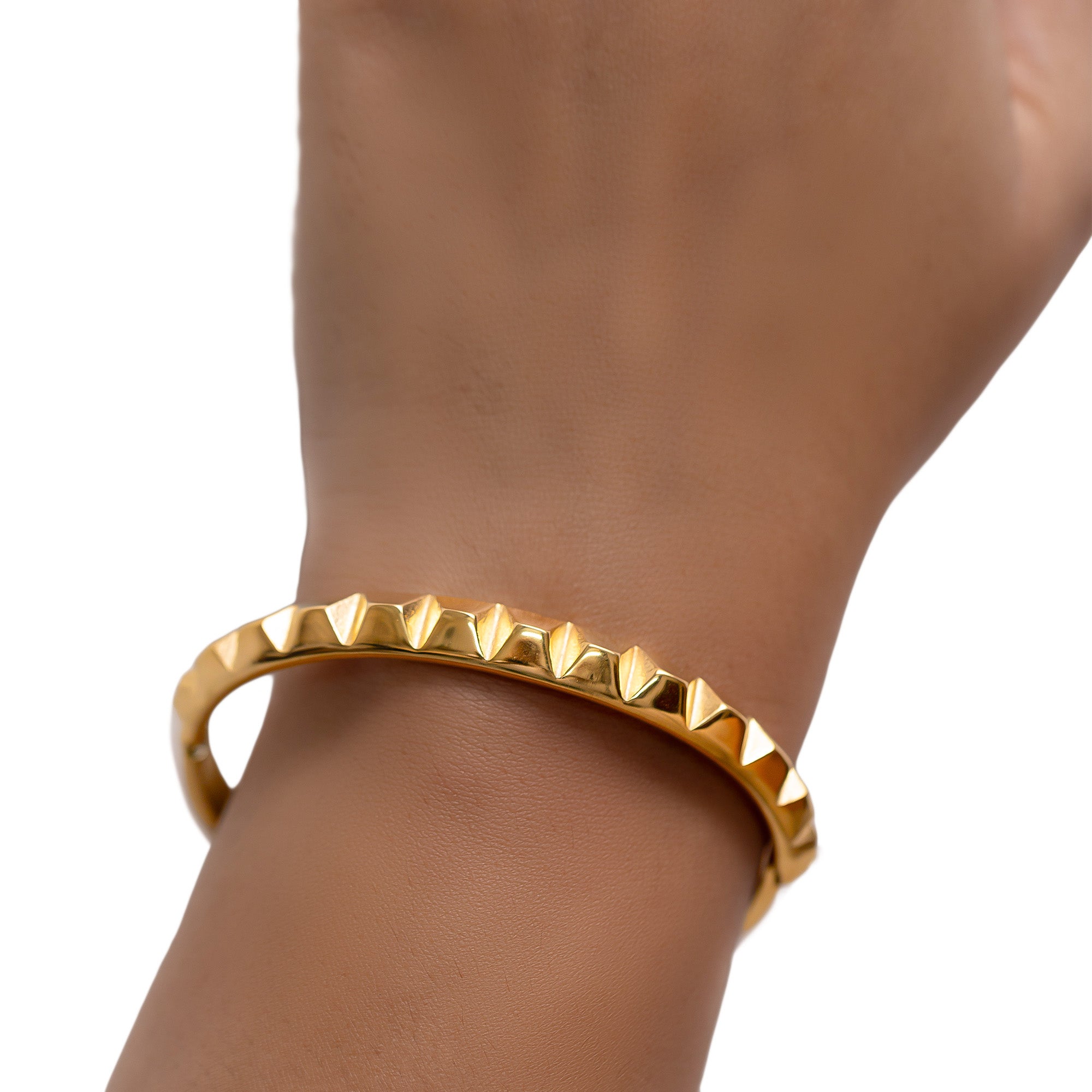 Make a modern statement with this abstract cut bracelet, featuring bold, geometric shapes and irregular edges that evoke cutting-edge style and artistic expression.