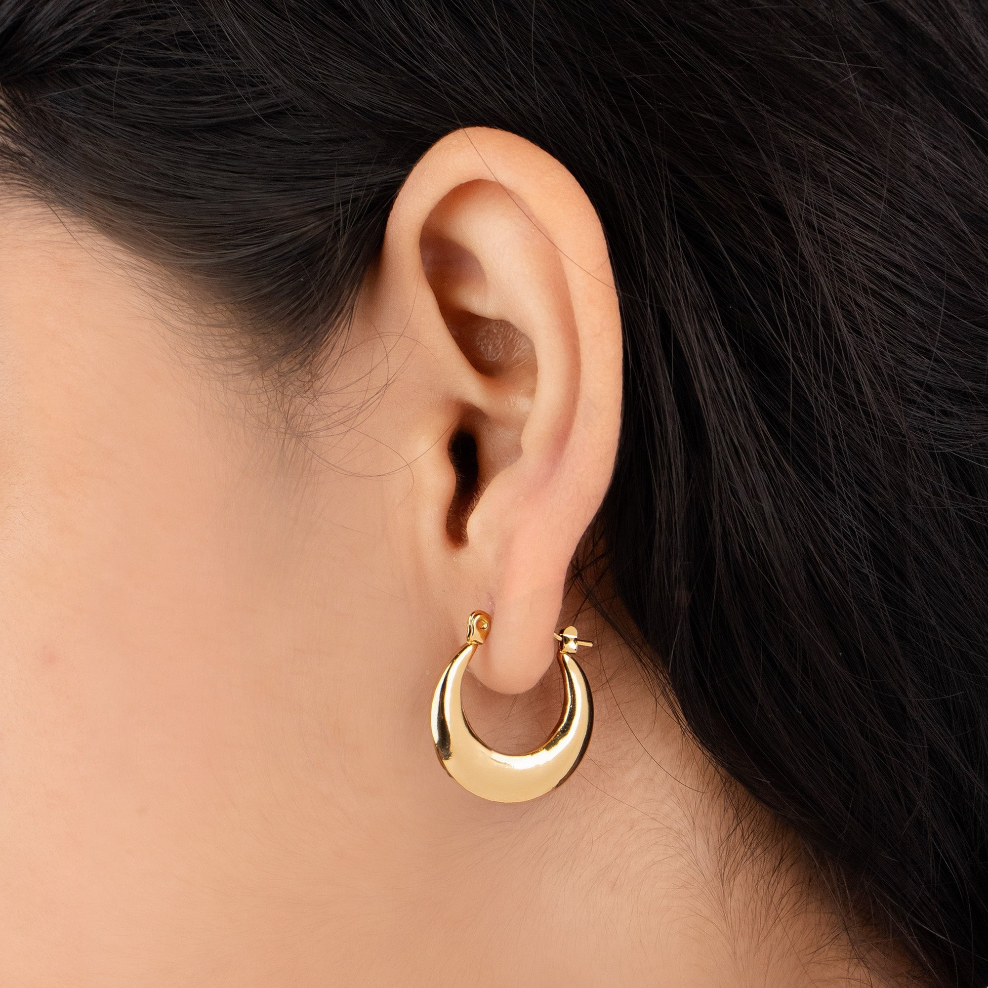 Dainty round hoops offer a subtle and refined touch to any jewelry collection with their delicate, lightweight design. Perfect for everyday wear, these earrings add a chic yet understated elegance to any outfit.