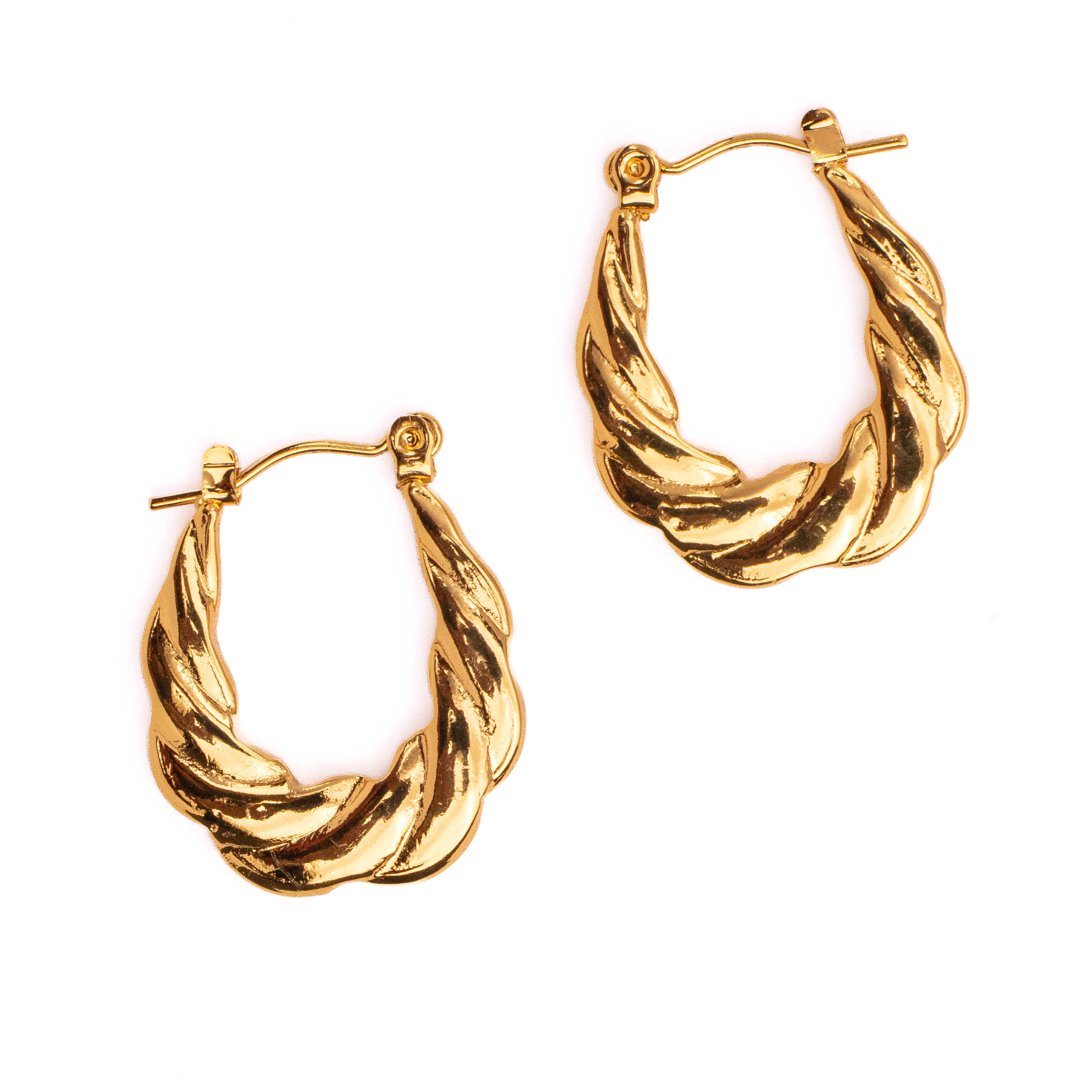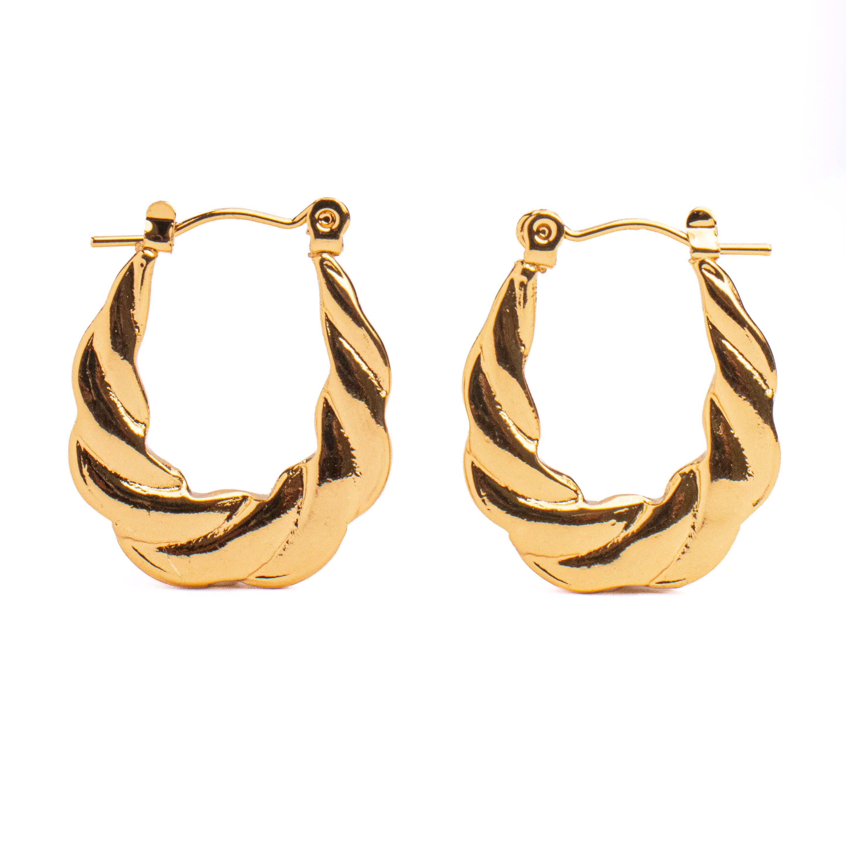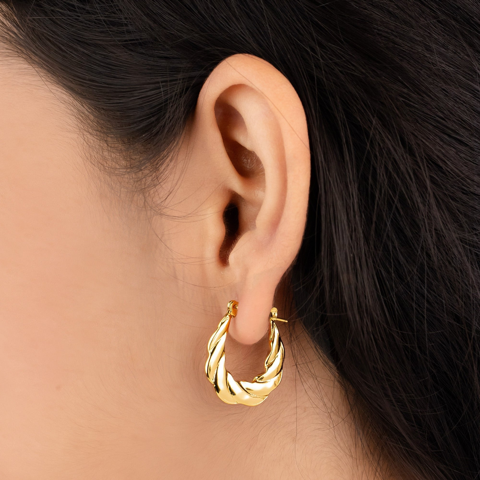 Spiral hoops showcase a twisting design that adds a modern, dynamic element to traditional hoop earrings. Their eye-catching shape creates a sense of movement, making them a stylish choice for any outfit.