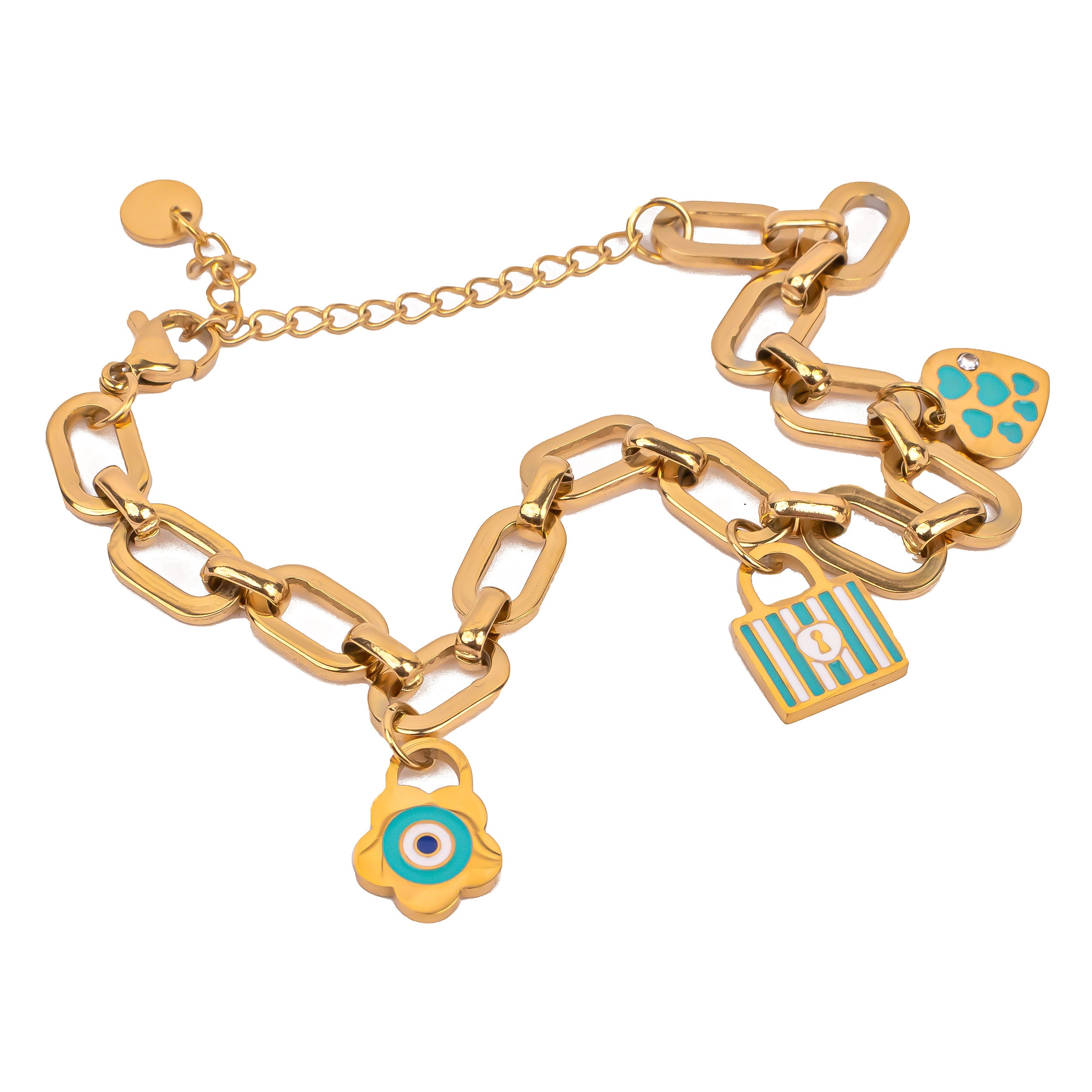 Turquoise Colored Multi-Charms Bracelet 18K Gold Plated